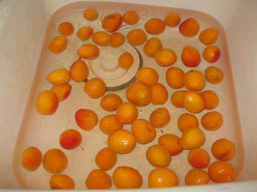 Now wash your apricots. Don’t wash them and then use them another day–the water gets inside and turns it brown. Wash them and use them right away. You do not need to peel them.