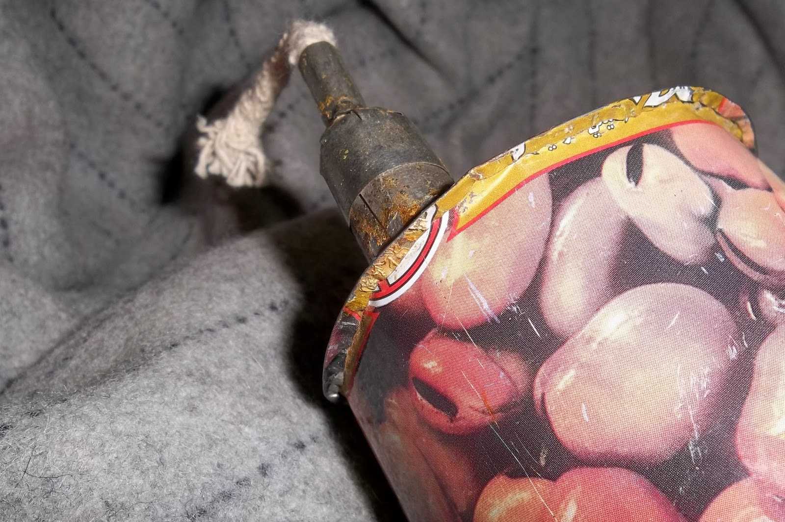 Look inside the little attached funnel. Besides the bean can used, obviously a BP can of some sort was used for the funnel.