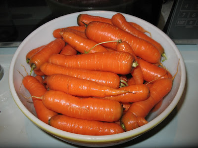 A couple of weeks ago sweet husband did me the favor of digging all the carrots out of the garden even though I told him he could just cover them up with straw and leave them there all winter long. So now I’m having to do something with all the carrots. We had a little box and a sackful he brought inside and our camping cooler full out in the yard. Now it’s too cold for them to be out in the cooler–they want to freeze in there–so the cooler of carrots is in the kitchen and if you know my house, there really isn’t room for them there. So I’m taking care of carrots.