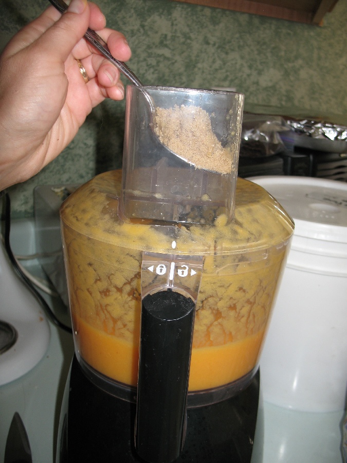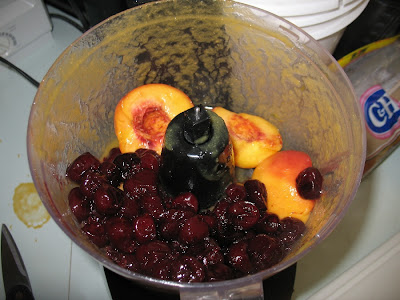 When you’ve got your fruit in, pulverize it. You want a nice smooth consistency with no lumps, so blend/chop the heck out of it.