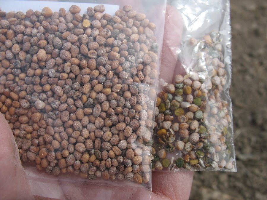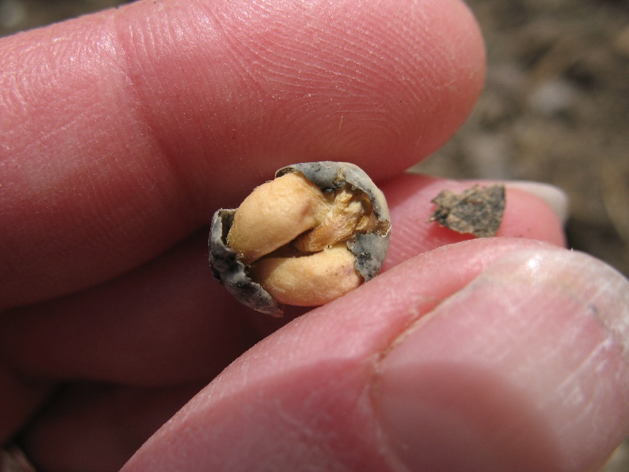 Finally the snow has melted and the garden dirt is workable, so yesterday I planted some of the cold crop seeds out there. I put in two varieties of peas. One of them strictly from the seeds I collected last year. We’ll see how they do. I’m actually relatively confident they’ll be fine because as I was digging in the dirt, I found quite a few pea seeds that hadn’t been collected last fall and had spent the winter under the snow. A couple of them were actually in the dirt and looked like this: