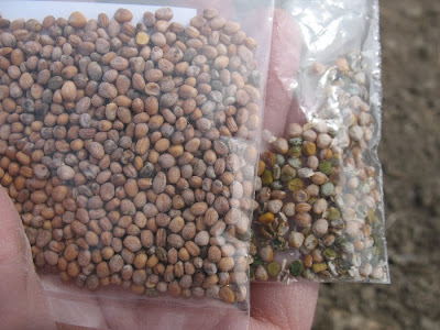 I also put in carrots, spinach, and radishes. I let a couple of radishes go to seed last year and planted some of my own radish seeds. We had a freeze hit before I think the seeds were quite done last fall–you can see the difference in my seeds on the right and the radish seeds from Hometown Seeds on the left. Yeah, a bunch of mine look a little green. I planted them in a different section than the Hometown Seeds radishes and I’ll see how well they do. By the way, I’ve been really impressed with the survival seeds packet from Hometown Seeds. They were not skimpy in the amount of seeds they sent.