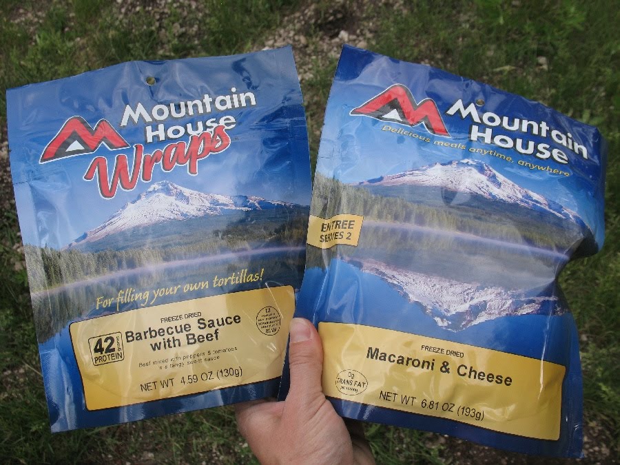 So in order to give these samples the true test, we took them camping instead of eating them in the kitchen. We had a Macaroni and Cheese double serving entree and one of the new Mountain House Barbeque Sauce with Beef Wraps that you can put on a tortilla or a bun or just eat plain if you want once it’s reconstituted.