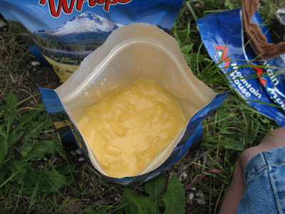 After the water is mixed in, seal the package using the little ziplock strip at the top and let it sit for 8-9 minutes (follow the directions on the back, if you happen to get one that says some other amount of time, believe the package over me). Go put your jacket on, help the kids tie their shoes, get the campfire started, observe nature, or whatever else you need to do while you wait.