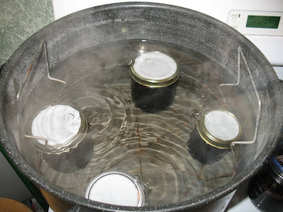 Prep your jars as usual (wash, sterilize, etc.). Put the Tattler lids and rubber gaskets in a pot of hot water and heat almost to boiling. The box says “scald lids and rubber rings”.