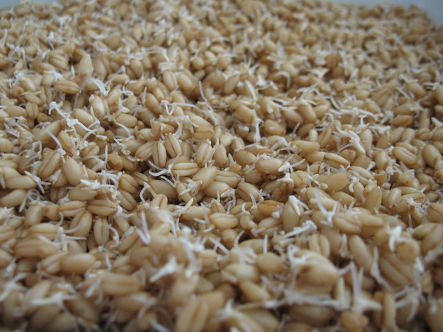 First, you sprout wheat. Mine was sprouted about 12 hours longer than I had originally wanted, but I forgot to stick it in the fridge the night it was done and so it just kept growing. Still good, but maybe it sprouted too much for this project? I don’t know. The wikipedia instructions say to sprout it over 4 days and mine was only about 2 1/2 days.